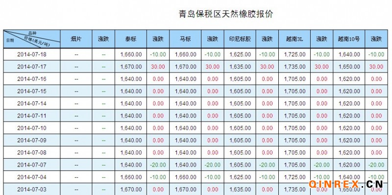 青島保稅區(qū)天然橡膠市場(chǎng)行情一周綜述(7.14-7.18)