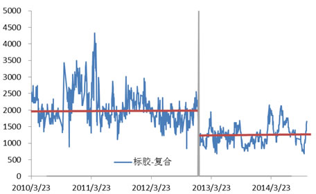 圖表2: 標(biāo)準(zhǔn)膠與復(fù)合橡膠價(jià)差(單位:元/噸)