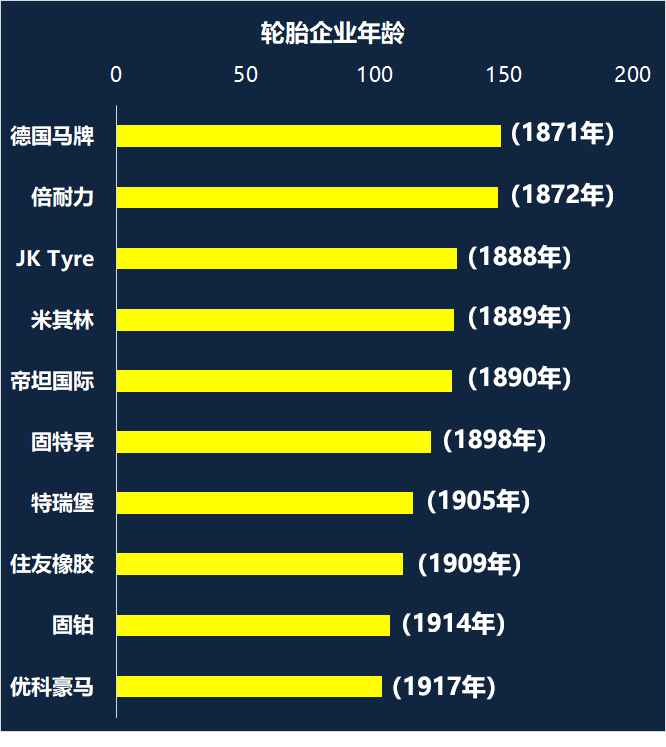 最老的輪胎企業(yè)是德國(guó)馬牌,成立于1871年,已經(jīng)擁有149年的歷史,目前旗下?lián)碛旭R牌、將軍(1915年)、維京(1931年)等。其實(shí)將軍品牌在美國(guó)也是一個(gè)百年品牌,維京曾經(jīng)也是挪威最老的輪胎企業(yè),距今也有將近90年的歷史了。德國(guó)馬牌背靠大陸集團(tuán),品牌和產(chǎn)品也可以說(shuō)“兵強(qiáng)馬壯”,目前正在高速發(fā)展,追趕固特異,米其林和普利司通。