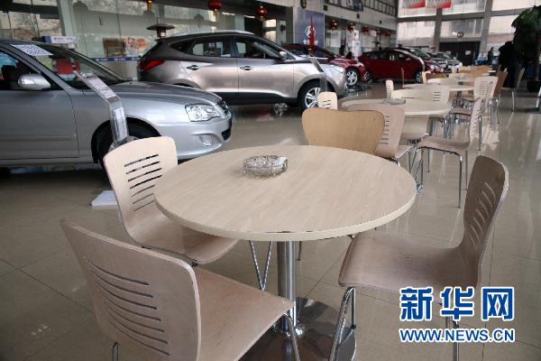 1月10日,北京市某4S店內(nèi)門可羅雀。北京制堵方案出臺已過半月,但由于第一輪搖號尚未開始,前往車市購車的消費者寥寥無幾。 新華社發(fā)(楊樂 攝)